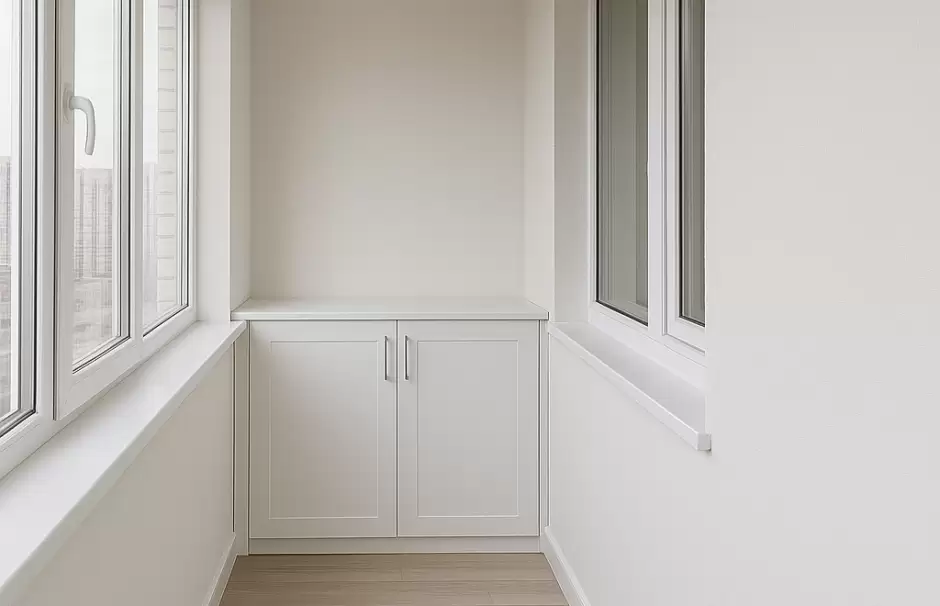 На данном балконе выполнено базовое выравнивание стен гипсовой смесью под последующую покраску. Основание очищено, прогрунтовано, выставлены маяки, локально усилены трещиноопасные зоны, нанесён выравнивающий слой и финишная шпаклёвка. Срок работ — 1–2 дня, поверхность готова к окраске.